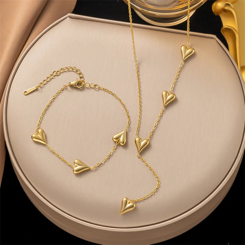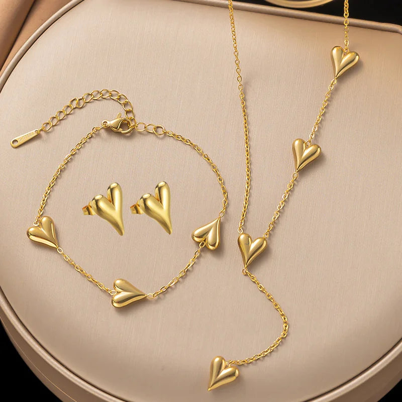 Celebrate love and elegance with Agnes✨ - a stunning jewelry set featuring a sweet heart tassel necklace, matching earrings, and a sleek bracelet. Crafted from durable stainless steel with a golden finish, this set shines at parties, special occasions, or as a thoughtful gift. Lightweight yet striking, Agnes✨ blends classic design with modern charm, making it a versatile addition to any jewelry collection.