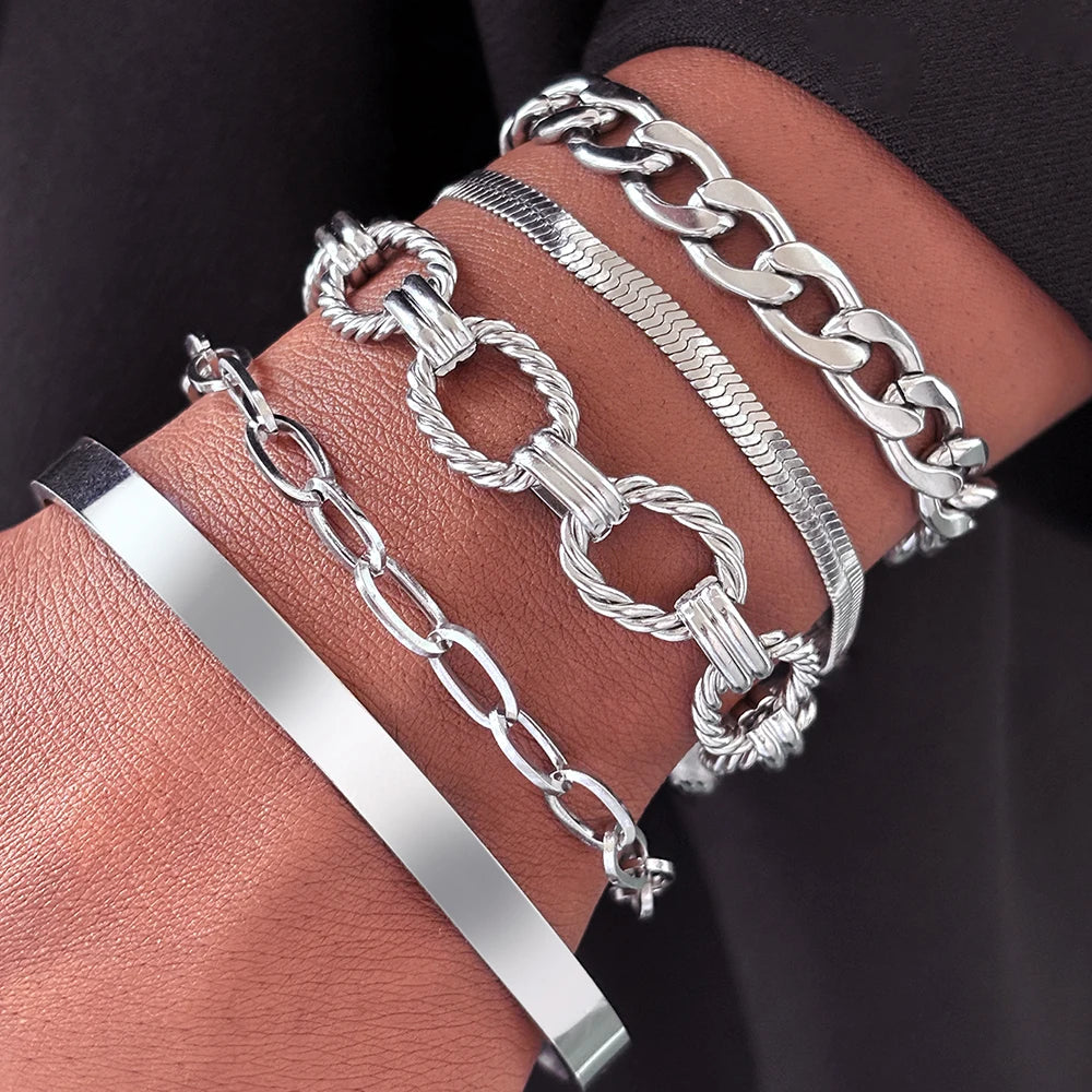 A sleek fusion of modern chains, Alvira✨ layers style, edge, and elegance into one effortless look. Crafted from durable stainless steel, these versatile bracelets can be stacked for bold impact or worn solo for a subtle, refined statement. Perfect for everyday wear or dressing up for special occasions, Alvira✨ adds a contemporary touch to any outfit.