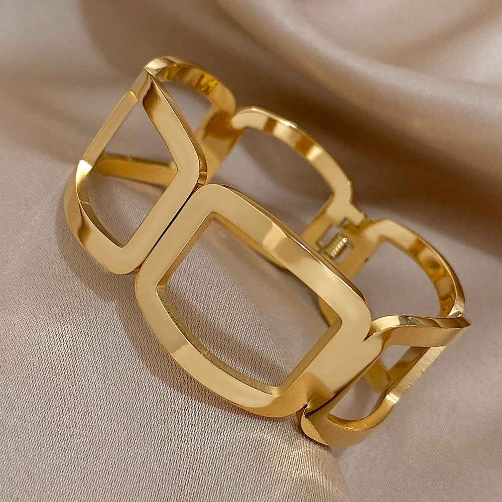 Elevate your everyday style with Bellara✨, a chic geometric bracelet meticulously crafted in gold-tone stainless steel. Its sleek, modern design makes it perfect for stacking with other bangles or wearing solo as a statement piece. Lightweight yet durable, Bellara✨ adds a touch of effortless sophistication to any outfit, making it an ideal gift or a versatile addition to your own jewelry collection.