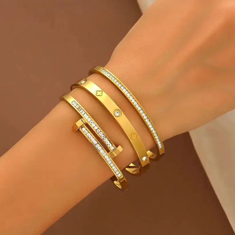 Elevate your style with Celvora✨, a 3-piece bracelet set that radiates modern elegance. Crafted from hypoallergenic stainless steel with sparkling 5A zirconia stones, it offers lasting shine and comfort. Featuring starry sky and clover motifs with a sleek hidden clasp, Celvora✨ is perfect for daily wear or special occasions.