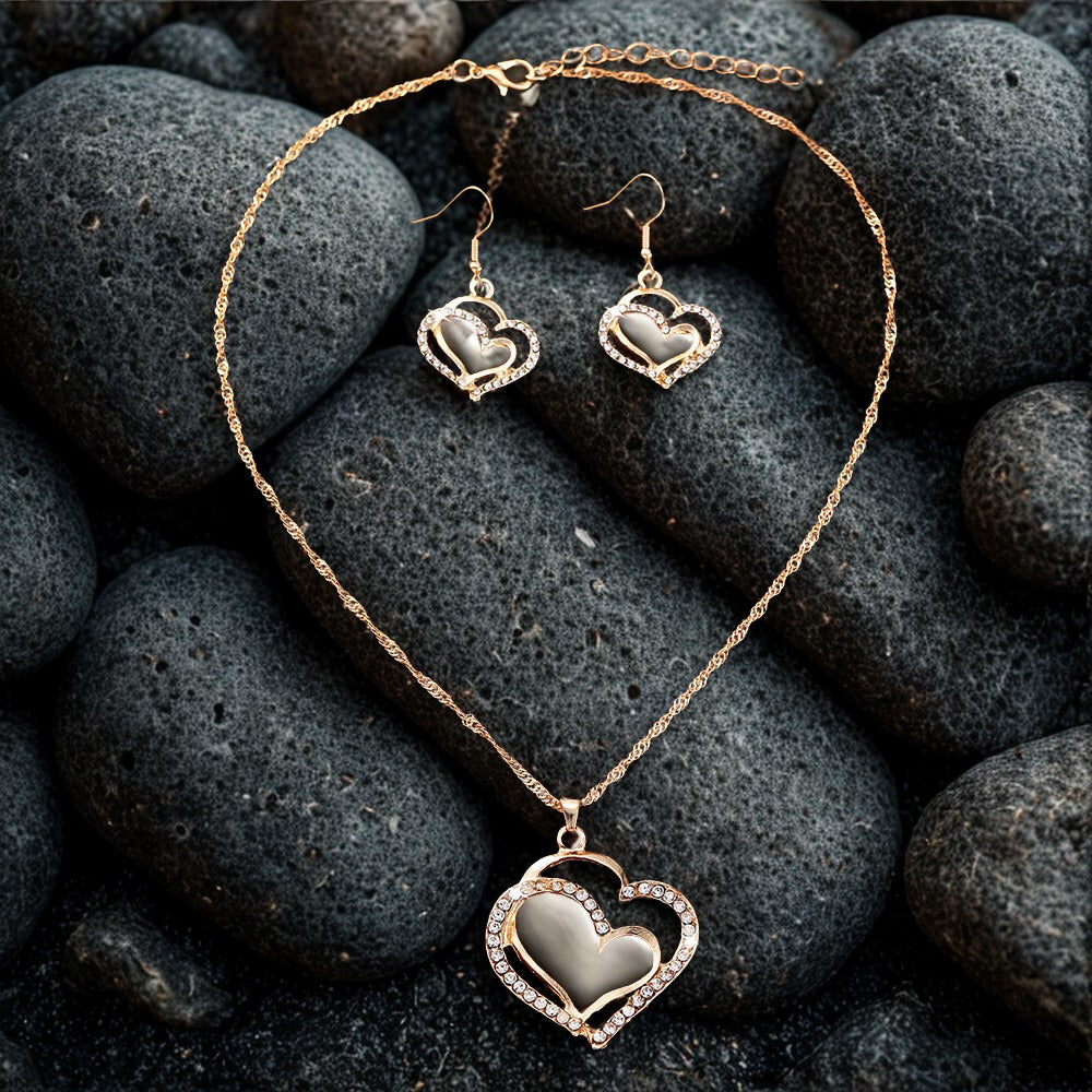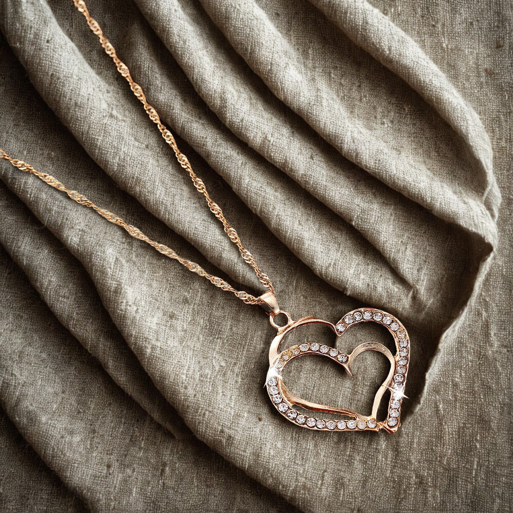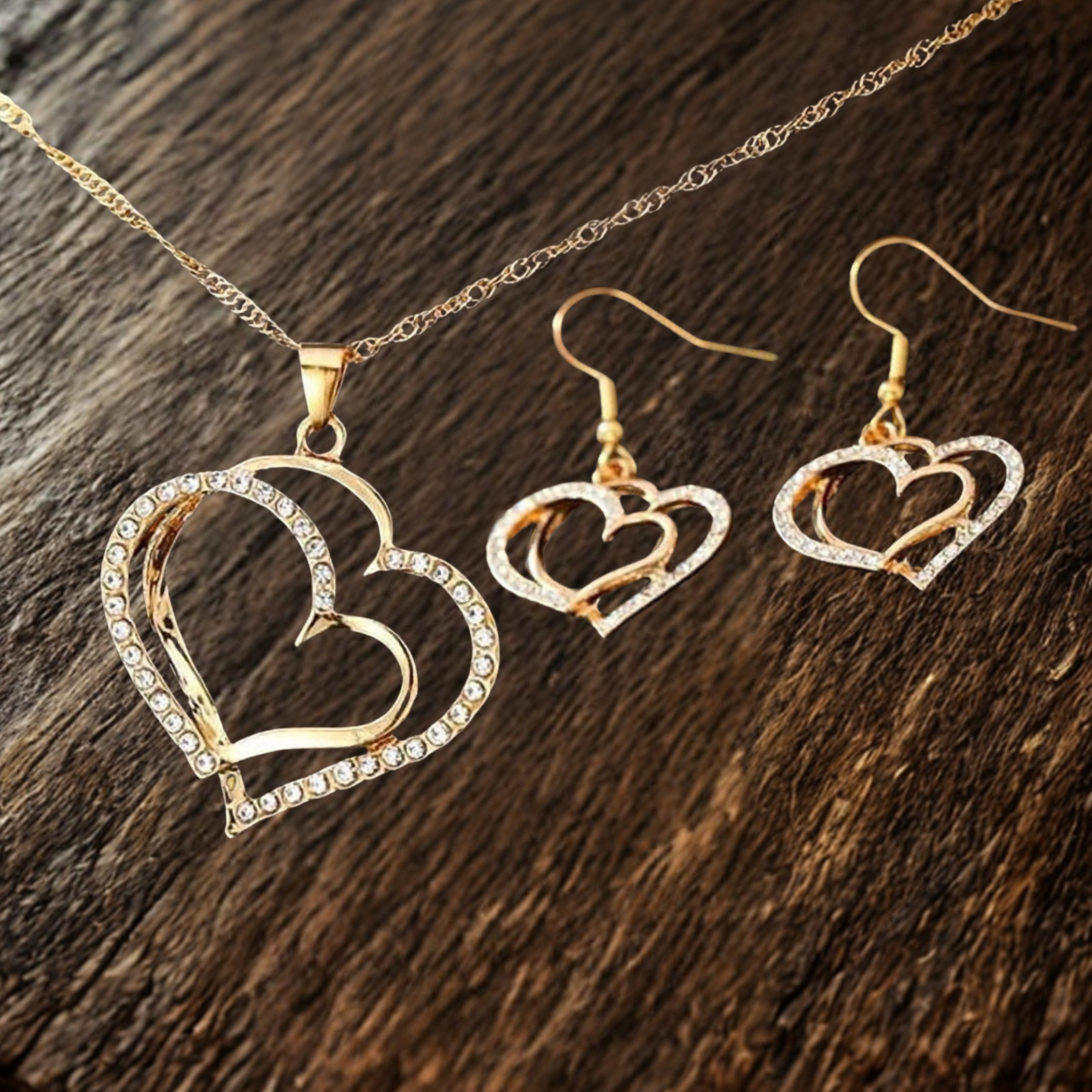Add a touch of romance with Inesa✨, featuring a retro-inspired double heart design adorned with sparkling rhinestones. This 3-piece set includes a necklace and matching earrings, crafted in durable alloy for lasting shine. Perfect for parties, casual outings, or gifting, Inesa✨ brings charming elegance to any outfit.