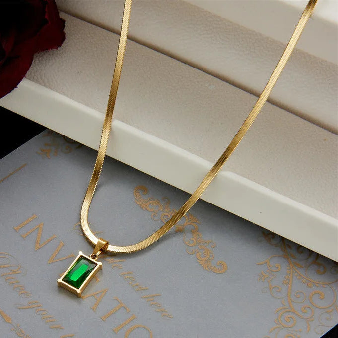 Stand out in style with Moira✨, featuring a striking rectangle green crystal zircon pendant paired with matching earrings. Crafted from durable stainless steel, this trendy set combines bold color with modern elegance, making it the perfect accessory for parties, special events, or elevating everyday looks. With its vibrant sparkle, Moira✨ adds a touch of sophistication to any outfit.