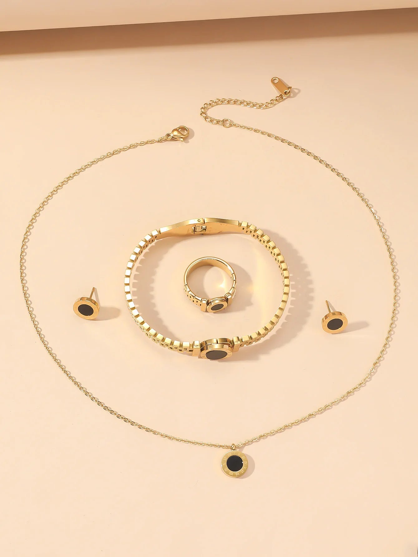 Elevate every moment with Tuula✨ — a stunning 5-piece jewelry collection that blends modern minimalism with timeless charm. Featuring a sleek necklace, bracelet, ring, and stud earrings, each piece is crafted from durable titanium steel with a chic digital-inspired design. Lightweight yet statement-making, Tuula✨ is perfect for parties, weddings, or everyday elegance. Wear it together for a bold, polished look or mix and match for effortless style.