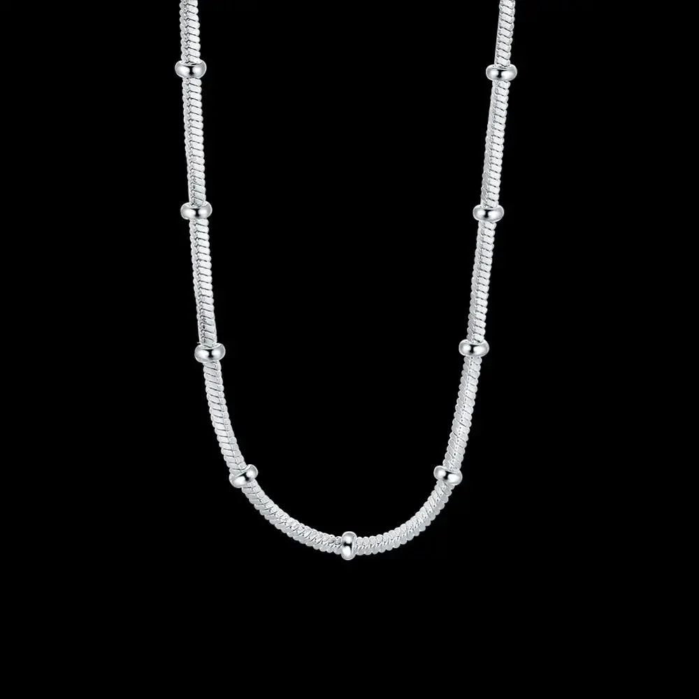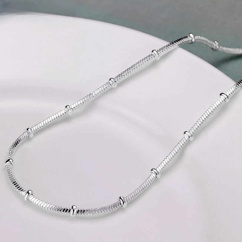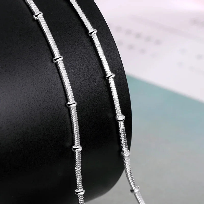 A timeless accessory for any wardrobe, Veyla✨ features a sleek 2mm silver-color snake chain with delicate bead accents. Available in 18–24 inches, this versatile necklace is perfect for layering or wearing alone, making it ideal for weddings, parties, daily wear, or as a thoughtful gift. Its classic design suits both women and men, adding understated elegance to any outfit.